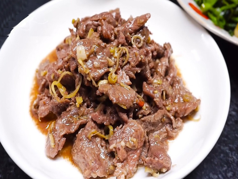 - Đưa thịt bò xào ra đĩa và trang trí với rau sống hoặc rau củ tươi (tùy chọn).